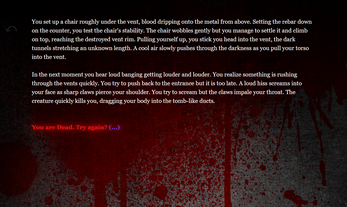Explore Null Sector through this Twine text-based adventure where every decision could be your demise. Discover Bitsy puzzles and unique endings as you attempt to escape the horrors of the facility.